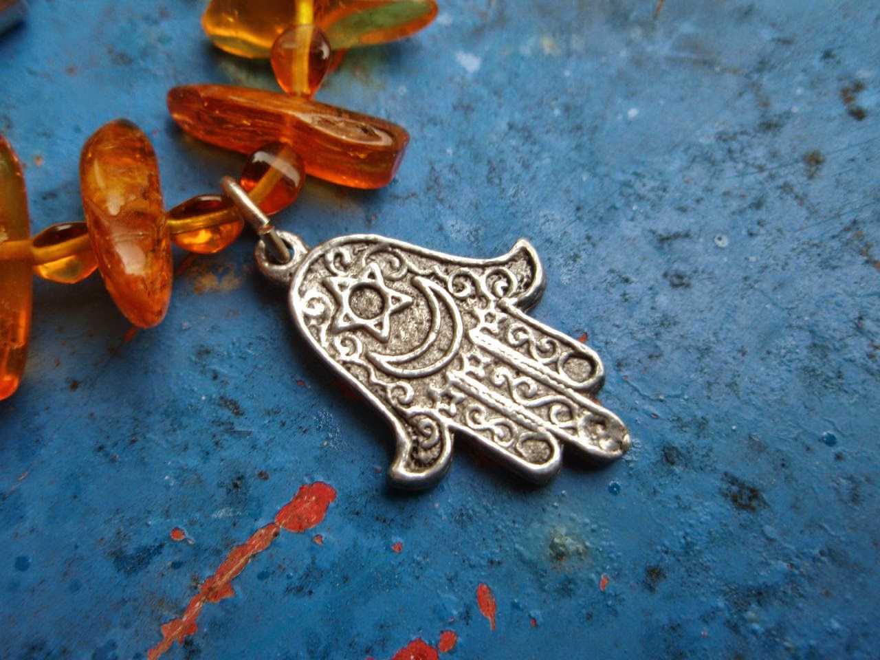 Считается, что такие камни помогут отразить любое зло, направленное на владельца украшения, предотвратят сглаз и недобрые мысли. Для усиления защитных свойств оберега, часто по центру пятерни наносятся символы – квадрат, звезда, рыбы, месяц, глаз.