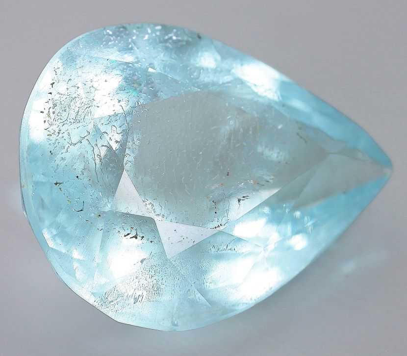 - У камня прозрачная структура и стеклянный блеск. Если во время рассматривания украшений с аквамарином вы заметили вкрапления и отсутствие блеска, не сомневайтесь, что это подделка.