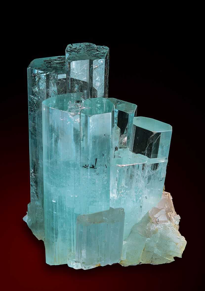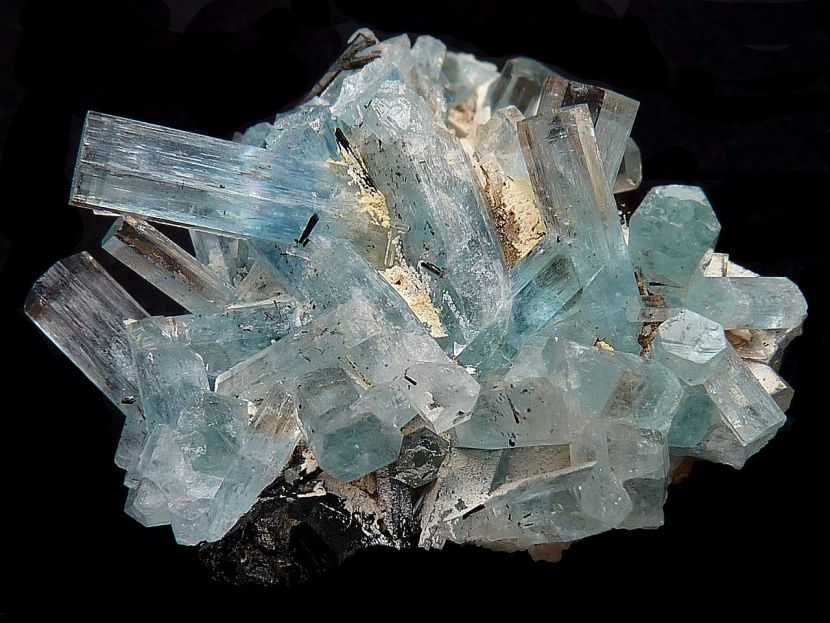 Для минерала характерна такая структура гексагональных колец, что в внутри формируются полые каналы. Типичный цвет аквамарина – голубой. За счет наличия примесей железа он приобретает зеленовато-синий оттенок.