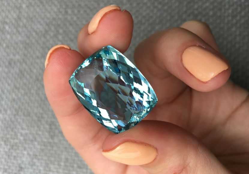- Прежде всего, нужно знать, как выглядит камень аквамарин. Это минерал голубого оттенка, напоминающего цветом морские волны. При изменении угла обзора камень отдает синевой.