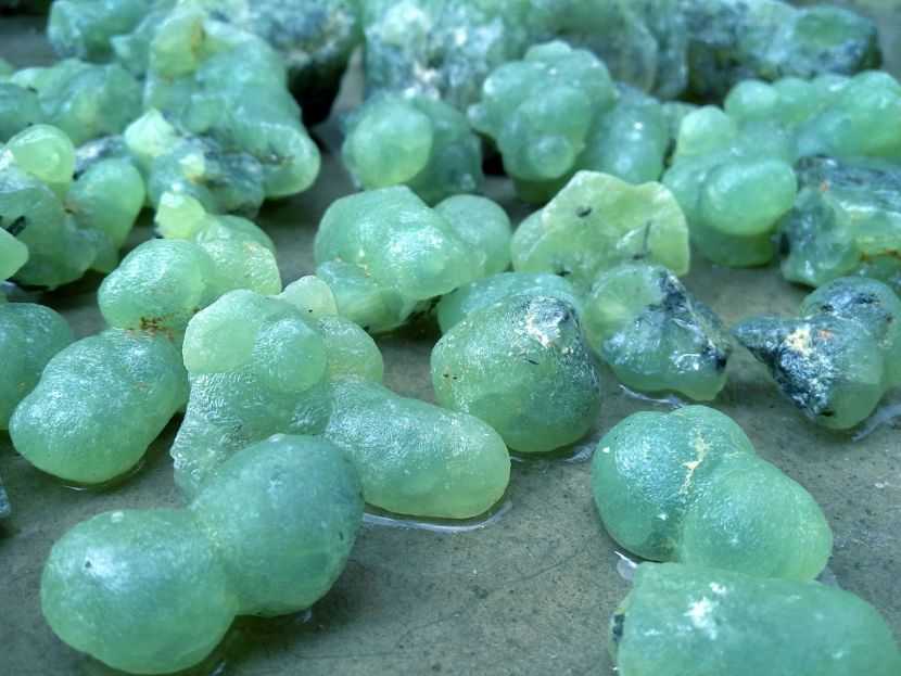 - Азиатские залежи пренита подарили миру разновидность «виноградный жад»: полые внутри зеленоватые камни, напоминающие виноградины.
