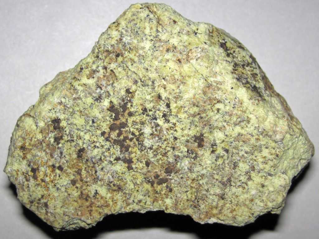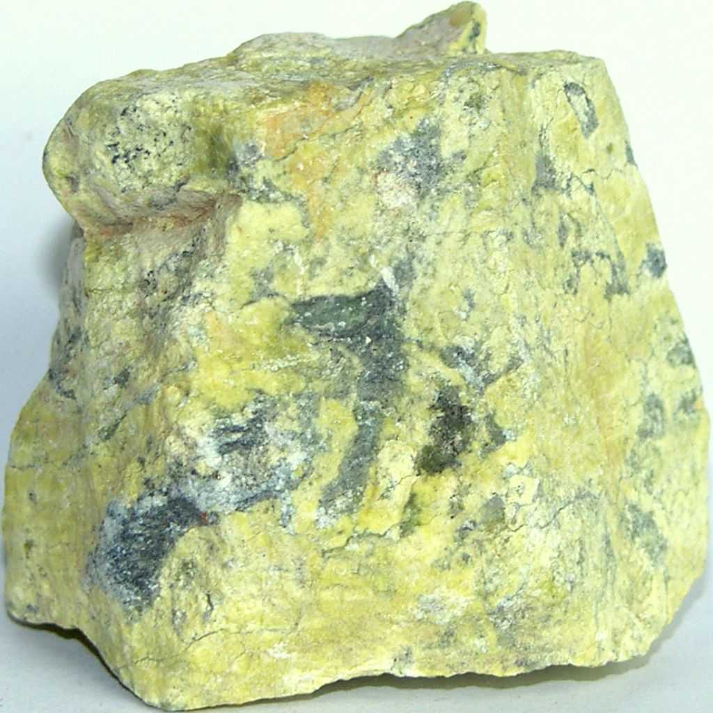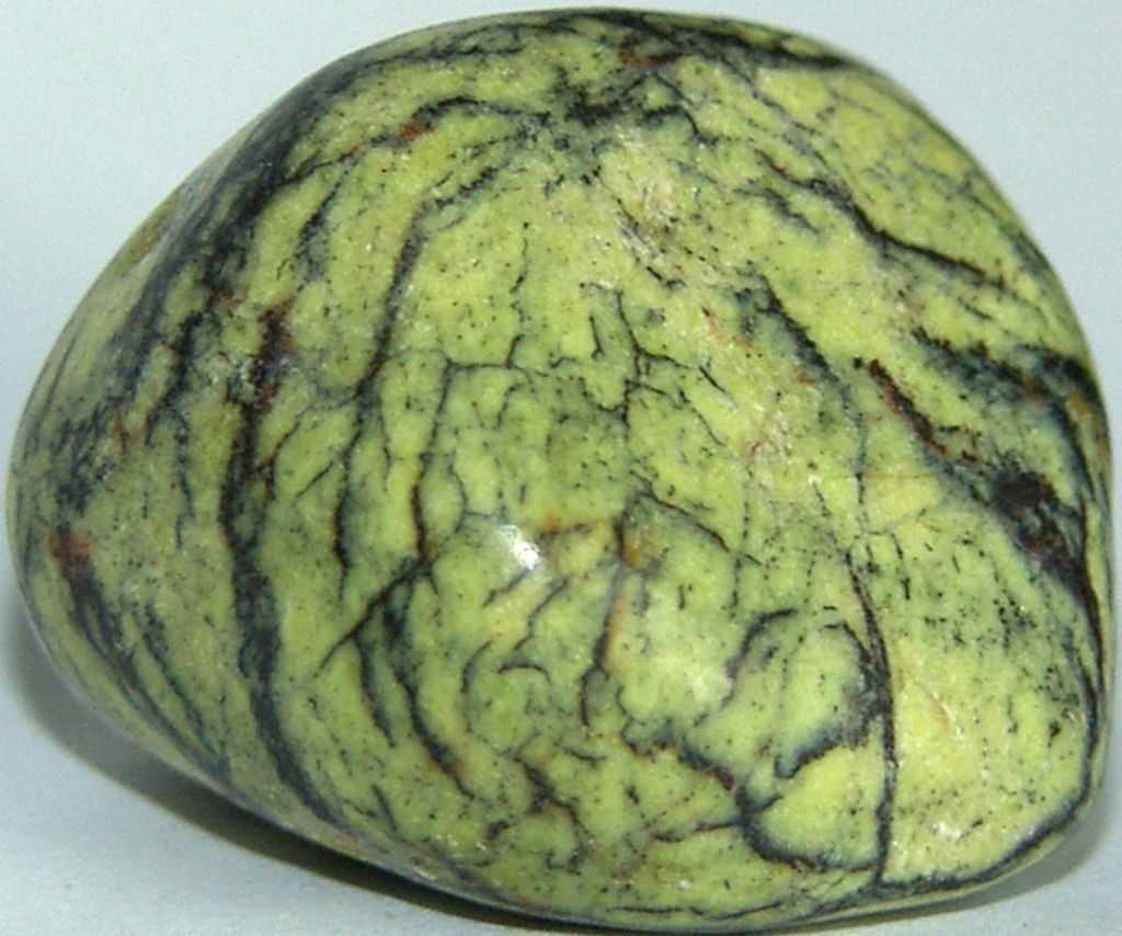 Серпентинит – относительно прочный и легко подающейся обработке минерал, широко распространен в природе. Богат магнием или карбоновыми породами, допустимо содержание примесей оливина, пироксена, амфиболов, хромита, талька. Как правило излом неровный, присутствует блеск в изломе от матового до воскового. Имеет зеленую или желтоватую окраску с вкраплениями внутри минерала.