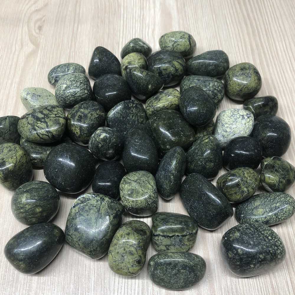 Такое мистическое название имеет под собой объективную и мифическую базы. Серпентином ученые назвали камни зелёного цвета, с гаммой, от желтовато-зелёной до темно-зелёной, с четким рисунком, напоминающим змеиную кожу. На камне вкрапления и прожилки с черными и золотистыми переливами и впрямь нагадывают кожу змеи. В переводе с латинского serpens – змея.