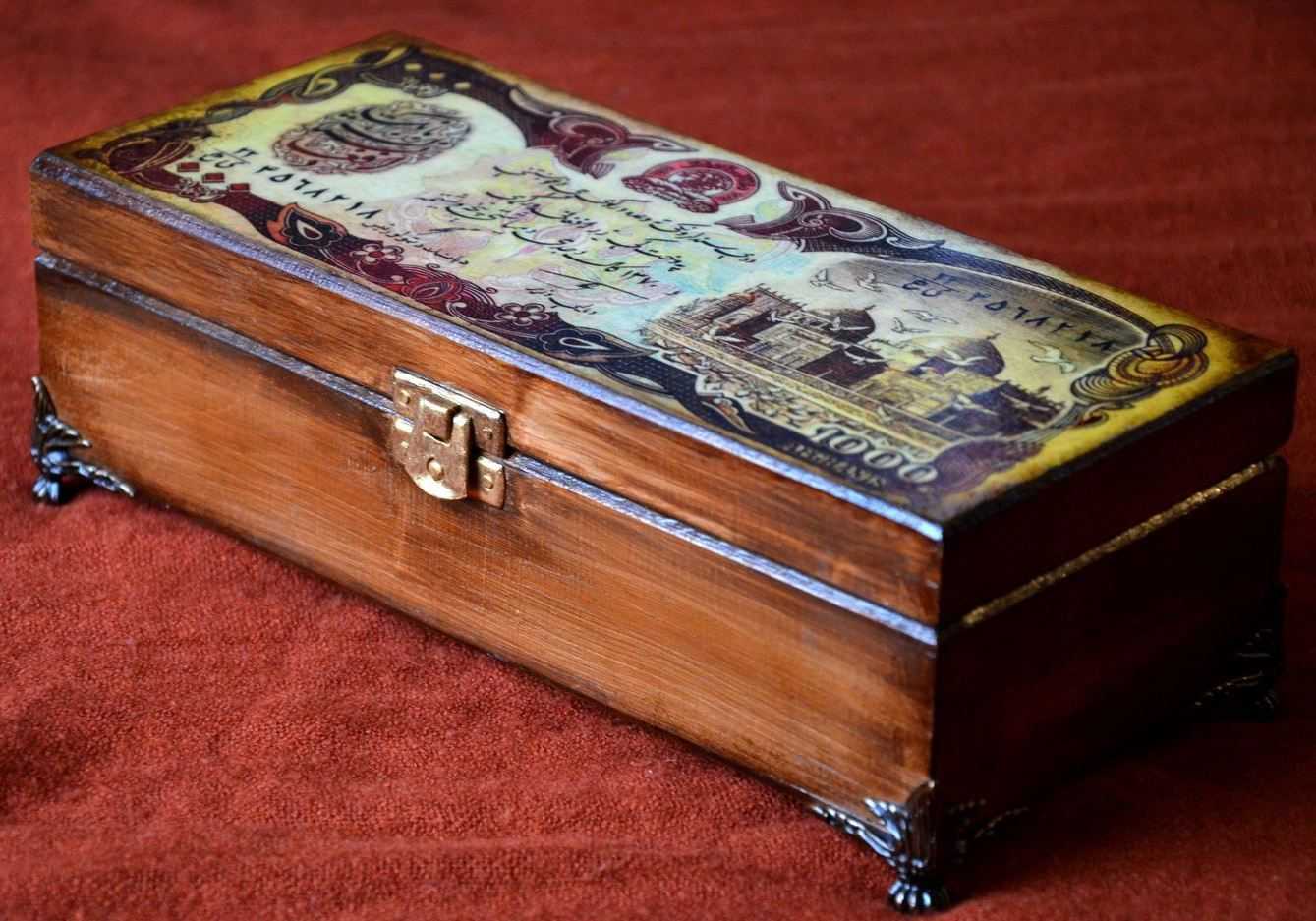 Денежный домик можно изготовить самостоятельно, а можно устроить его в красивой шкатулке из дерева или пластика, отделанной изнутри красным или золотистым полотном. Деньги необходимо хранить, сложив их по номиналу (сначала купюры меньшего достоинства, затем — большего). Поверх денег кладут записку с перечнем предметов, которые домочадцам хотелось бы приобрести как можно быстрее.