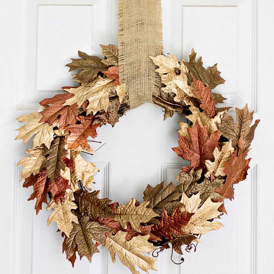 Очень красиво смотрится венок, в который сразу вплетаются листья и гроздья рябины. Для этого нужно подбирать листья с длинными черешками. Процесс довольно трудоемкий, вам придется вспомнить детские навыки плетения венков из одуванчиков, но результат несомненно вас порадует.
