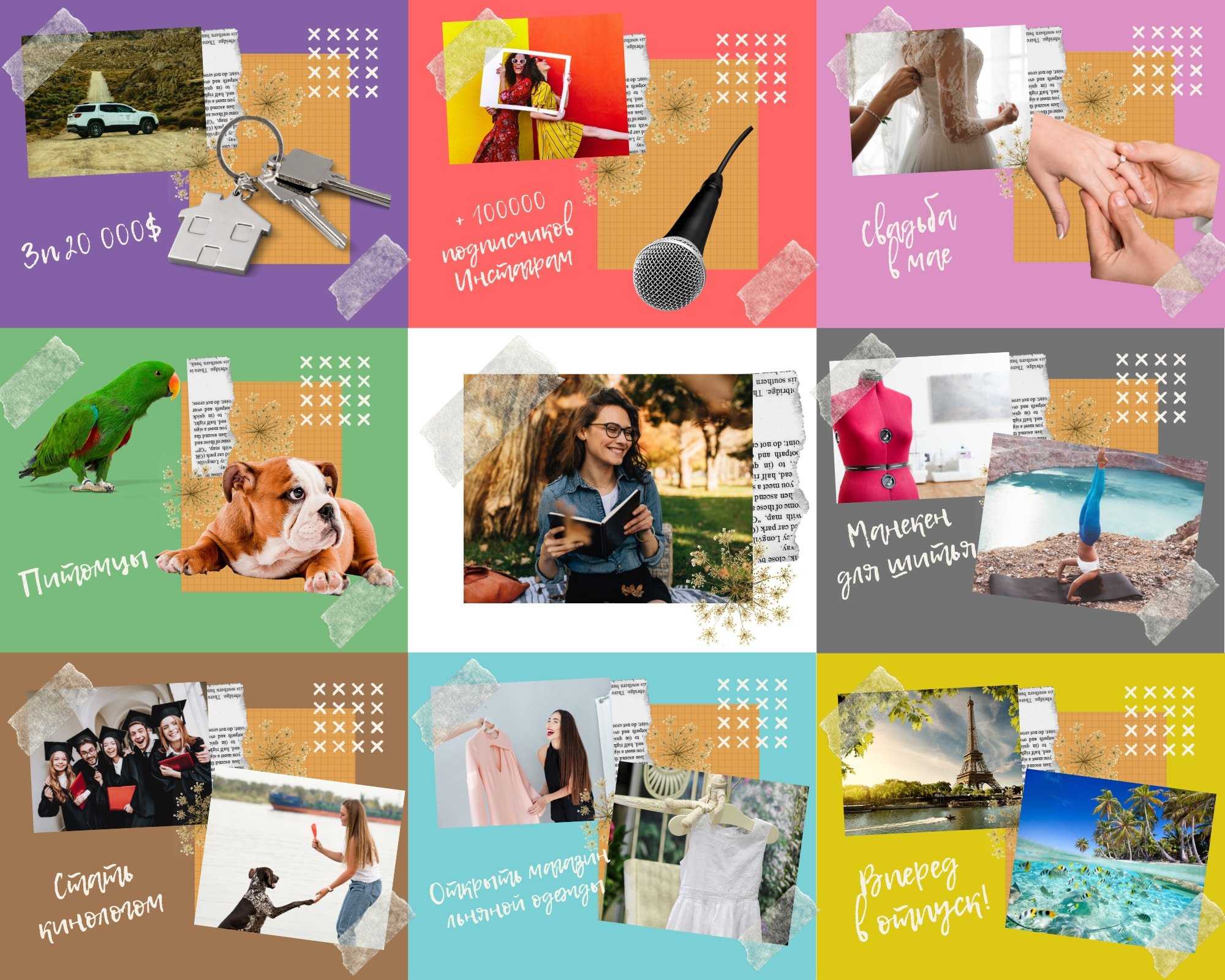 Все обряды на моделирование будущего выполняются в полнолуние, чтобы быстрее добиться желаемого. Для этого используют ватман или лист формата А4. Там располагают вырезанные из журналов картинки или распечатанные изображения того, что хочется получить. Карту желаний оформляют так, чтобы она нравилась человеку, дополнительно ее разукрашивают карандашами, красками, рисуют забавные картинки.