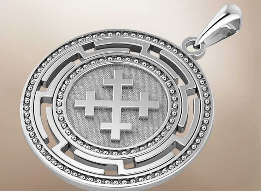 По обычаю, оберег инкрустировали драгоценными камнями синего или лазурного оттенка. Светоотражающий материал, якобы отбивает любое зло, что пытаются причинить хозяину амулета.