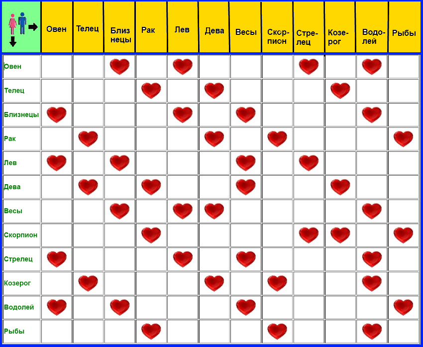Совместимость имен в браке и любви по знаку зодиака