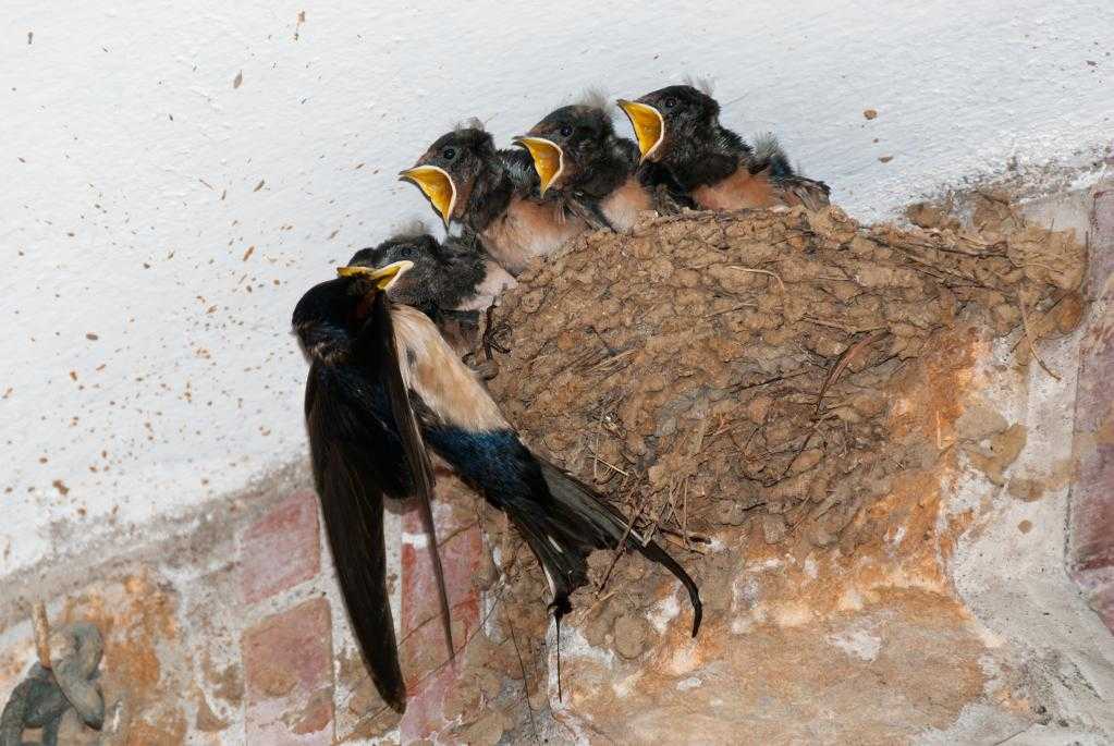 Ласточки славятся трудолюбием и любовью к птенцам. Если птенчик из последнего выводка не успевает окрепнуть до перелета на зимовье, родители остаются с ним до тех пор, пока малыш не окрепнет. Родители без устали кормят своих птенчиков, принося корм до 500 раз в сутки.