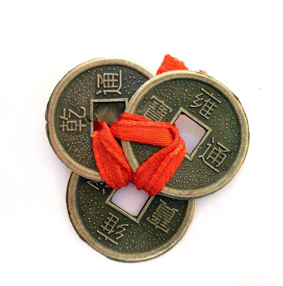 Вторым обязательным предметом является специальный символ в виде китайских монет, завязанных красной веревкой. Такие продаются в любом магазине фэн-шуй. Они являются символом изобилия и богатства.